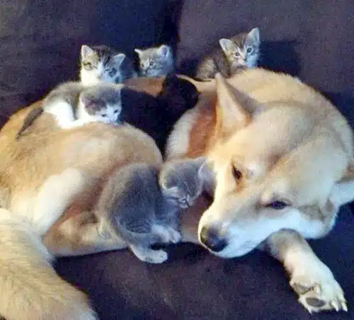 Cette chienne semble avoir eu une portée de…chatons ?!